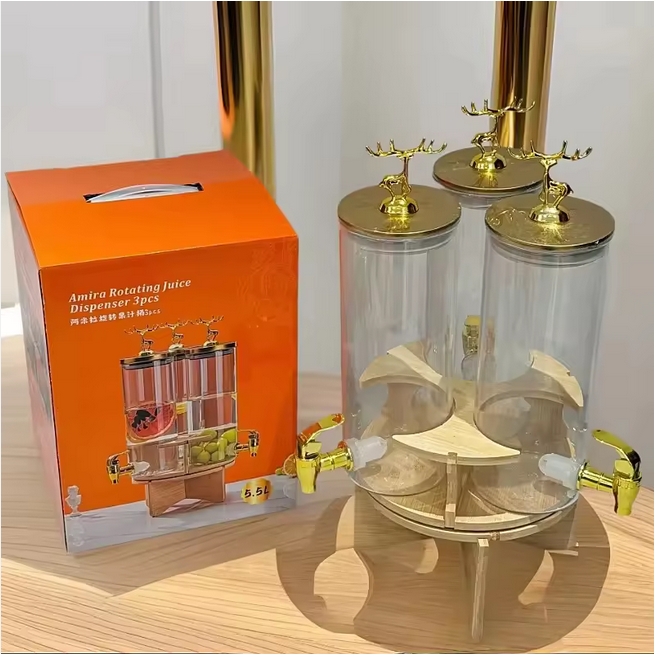 Ce distributeur de boissons en verre rotatif de 3 pièces avec robinet est conçu pour être à la fois fonctionnel et écologique, parfait pour servir du jus et des boissons lors de rassemblements. Fabriqué à partir de matériaux en verre et en bois, il est résistant à la chaleur et au froid, assurant durabilité et polyvalence. Le design transparent permet une visibilité facile du contenu tandis que la grande capacité du distributeur le rend idéal pour le camping ou l'utilisation domestique. Avec des dimensions de 22,9 x 22,9 x 30 cm et un poids net de 900 g, il combine praticité et esthétique moderne.