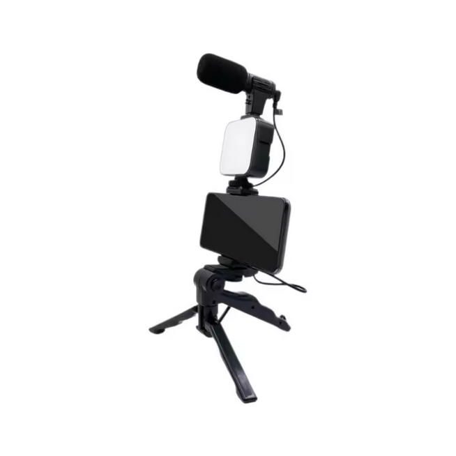 AY49 RGB Smartphone Vlogging Kit Trépied Support pour Téléphone Mini Microphone LED Remplissage Lumière Démarreur pour TikTok Live Stream YouTube Video