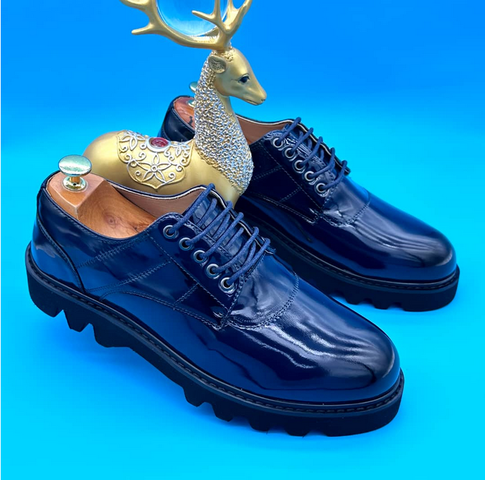 Chaussures de ville pour hommes en cuir de vache de haute qualité avec une finition noire brillante, dotées de trous ajourés