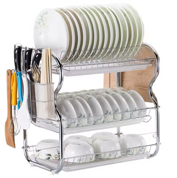 Ce support de cuisine autonome à 3 étages est fabriqué en acier inoxydable durable,