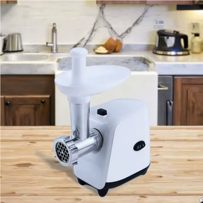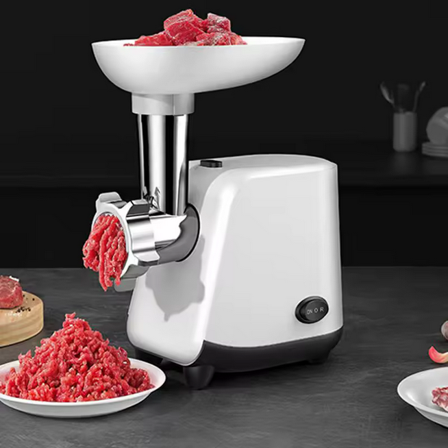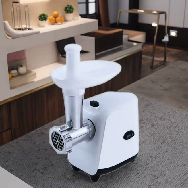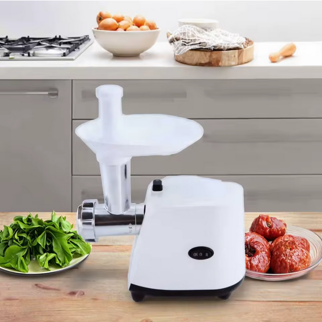 Hachoir à viande électrique semi-automatique multifonctionnel de grande capacité en acier inoxydable de petite taille, blanc, adapté à 4-5 personnes