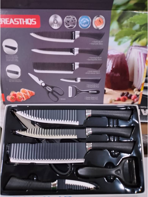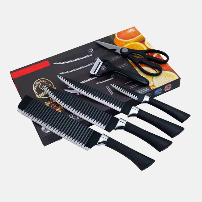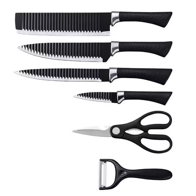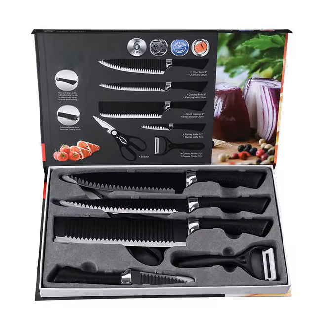 Lot de 6 couteaux de cuisine en acier inoxydable à revêtement antiadhésif noir, 6 pièces, ensemble de couteaux à revêtement antiadhésif avec cadeau, nouveauté 2025