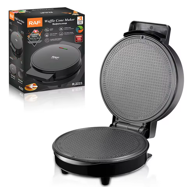 Ce fabricant de cônes à gaufres électriques présente une surface de cuisson avec revêtement antiadhésif, assurant une utilisation pratique et économe en énergie pour une utilisation domestique. Il comprend des plaques amovibles