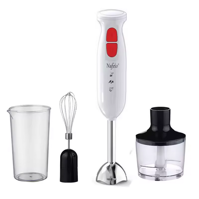 Ce mixeur alimentaire polyvalent 4-en-1 est doté d'un moteur puissant de 200 W, de lames en acier inoxydable de haute qualité et d'accessoires faciles à nettoyer et compatibles avec le lave-vaisselle.