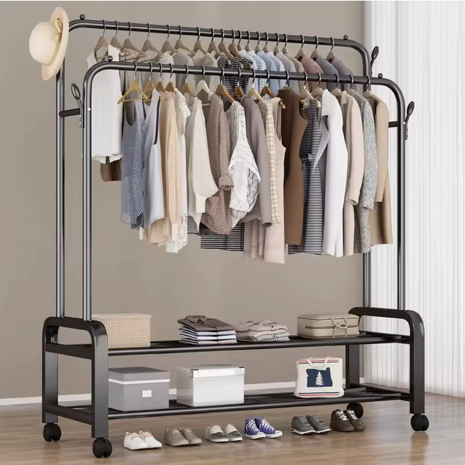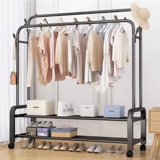 Ce portant à vêtements métallique multifonctionnel est fabriqué en fer durable,