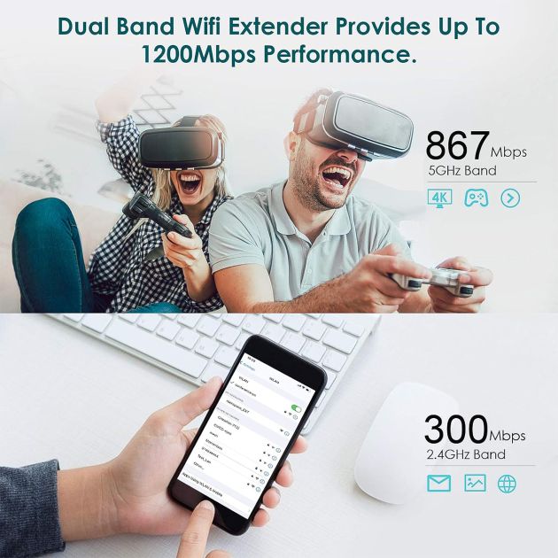 Transformez votre expérience Internet avec le répéteur WiFi AC1200 Rockspace. Profitez de vitesses allant jusqu'à 1200 Mbit/s pour une navigation fluide, des jeux en ligne sans latence et un streaming vidéo HD 4K sans interruptions. Avec une portée impressionnante jusqu'à 2 640 m², ce répéteur WiFi AC1200 élimine les zones mortes de votre domicile, assurant une connectivité fiable dans chaque coin de votre maison, du sous-sol au grenier.