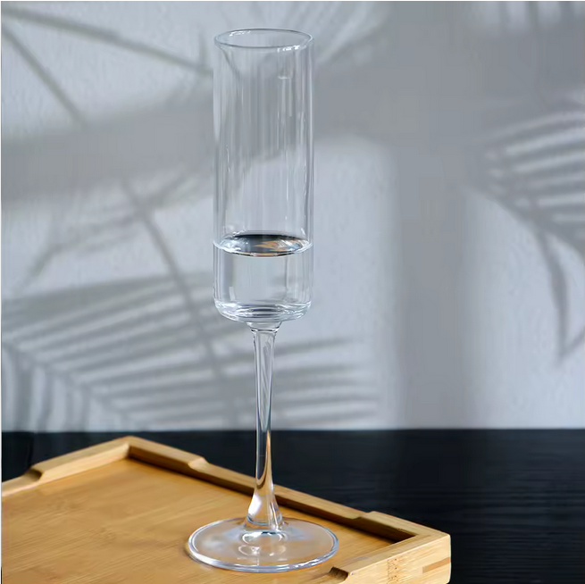 Flûte à champagne en verre de haute qualité avec un design lourd, disponible en plusieurs couleurs comme le noir, le rouge, le bleu, le vert et le jaune. Options de personnalisation des couleurs