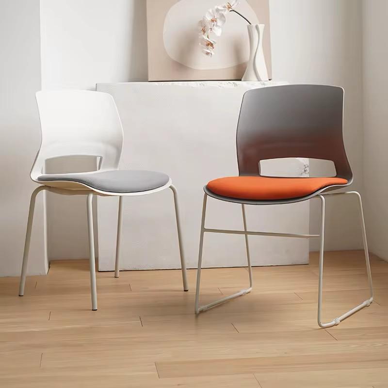 Cette chaise de bureau au design minimaliste allie fonctionnalité et modernité. Son assise est rembourrée et recouverte d'un tissu noir pour un confort accru, tandis que le dossier est en plastique blanc durable. Les pieds en métal chromé lui donnent une allure élégante et assurent une grande stabilité. Légère et empilable, elle est parfaite pour les salles de réunion, les bureaux à domicile ou les espaces de travail collaboratifs. Son style épuré s'intègre facilement dans n'importe quel décor contemporain.