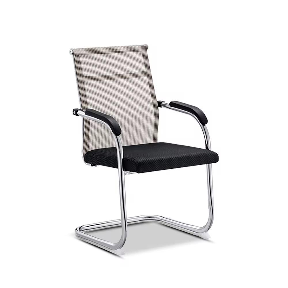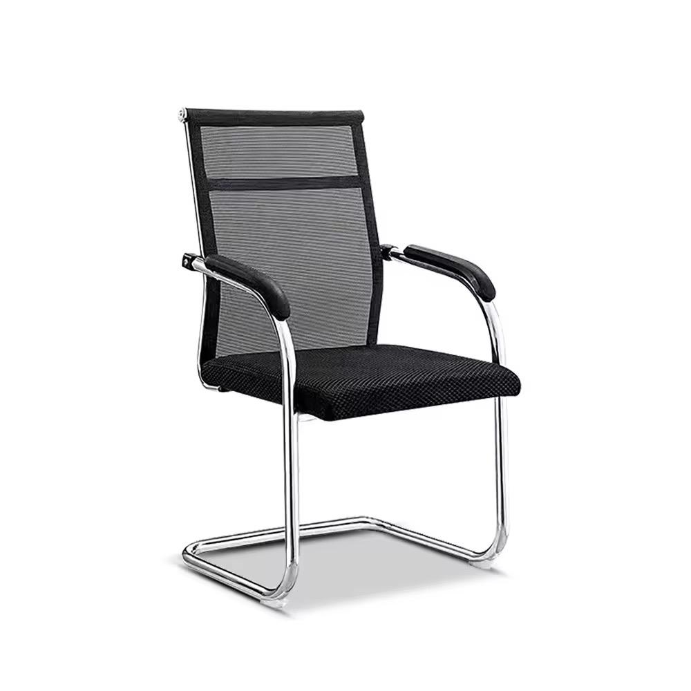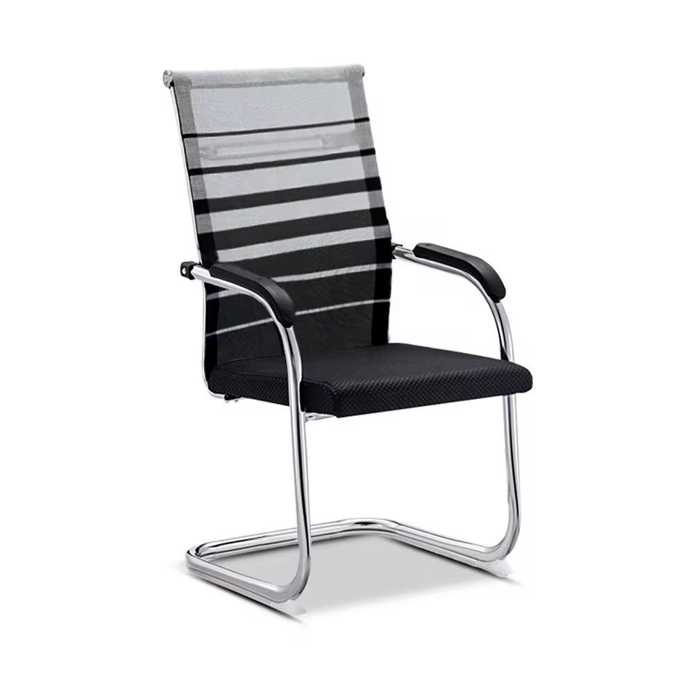 Cette chaise de visiteur ou de bureau se distingue par son design moderne et sa construction robuste. Le dossier est en maille respirante, avec un motif à rayures, ce qui la rend confortable et idéale pour de longues périodes d'assise. L'assise est rembourrée et recouverte d'un tissu noir. La structure tubulaire en métal chromé forme un piètement en porte-à-faux, lui conférant une grande stabilité et un style contemporain. Elle est parfaite pour les salles d'attente, les salles de réunion ou comme siège d'appoint dans un bureau.