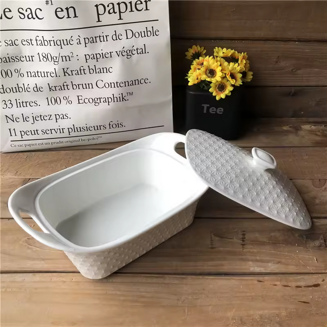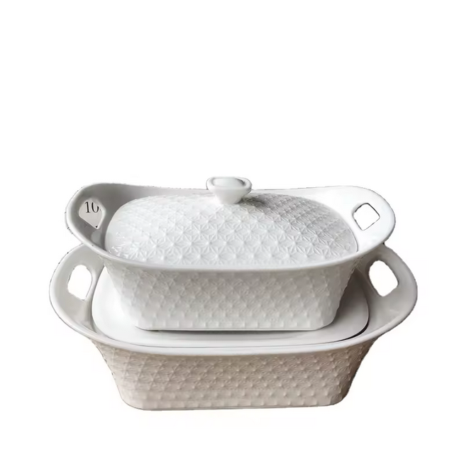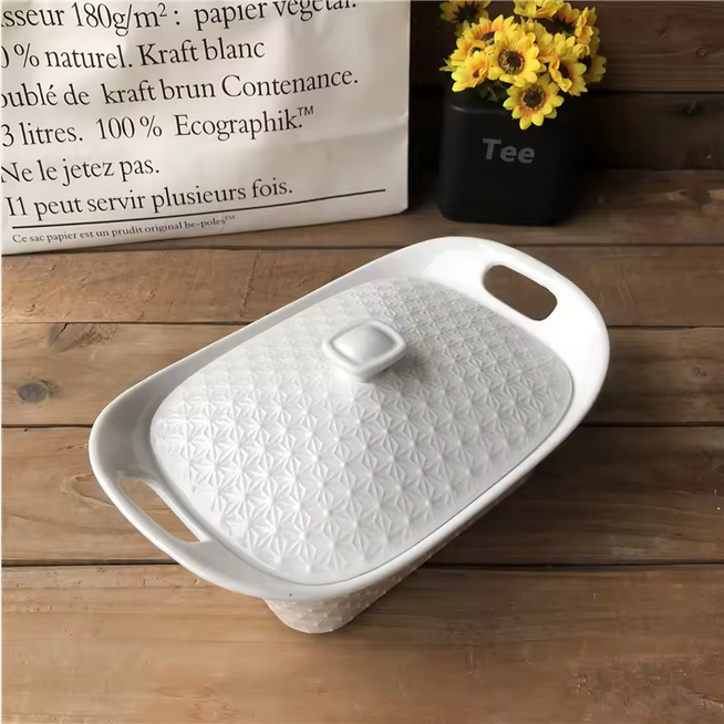 Cette soupière en céramique présente un design moderne avec motif en relief, fabriquée à partir de porcelaine écologique et sans plomb. Elle offre une faible absorption d'eau et une résistance aux extrêmes de température, assurant durabilité et sécurité. Adaptée pour une utilisation à domicile, dans les hôtels et les restaurants, elle prend en charge la personnalisation avec des services OEM disponibles.