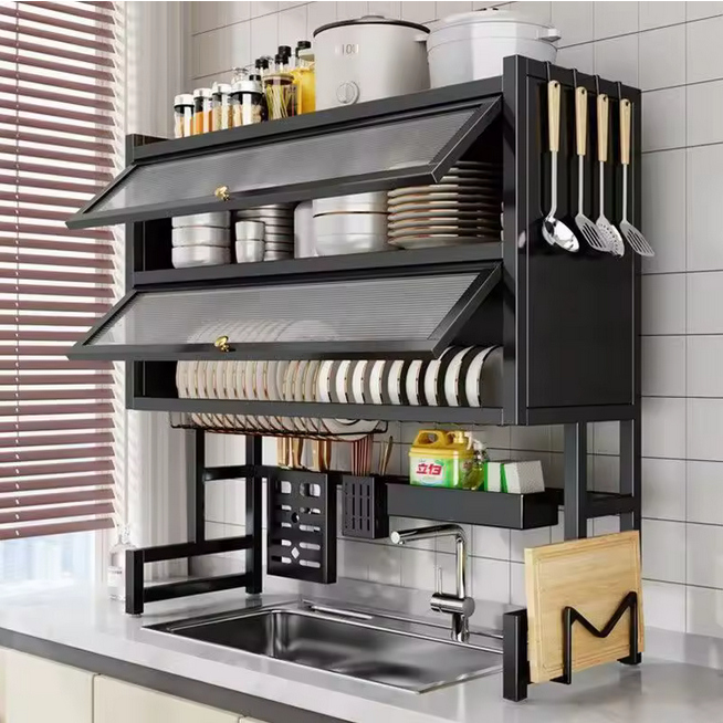 Ce support de porte d'armoire de cuisine offre un design moderne et fonctionnel, fabriqué en acier au carbone durable avec une finition lisse pour un nettoyage facile. Son design à trois niveaux offre une capacité extra large