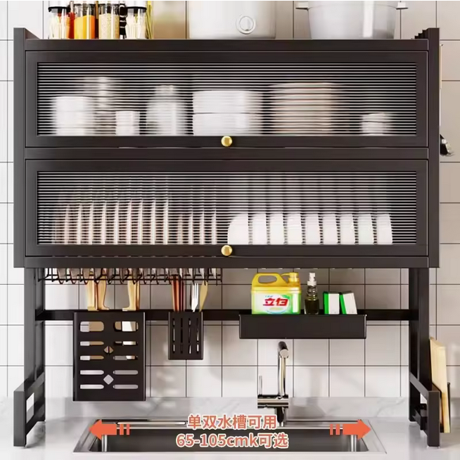 en protégeant la vaisselle de la poussière et des éclaboussures, ce qui
