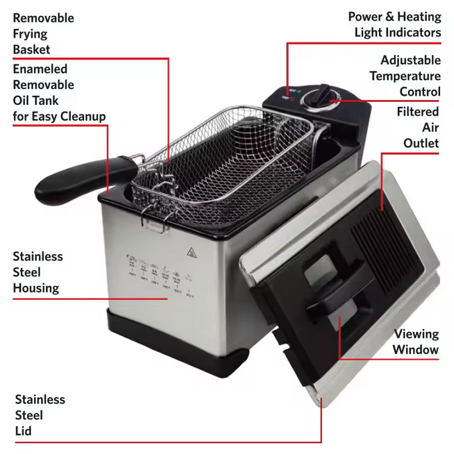 Cette friteuse électrique de 2,5L est dotée d'un boîtier en acier inoxydable, d'un thermostat réglable et d'un revêtement émaillé pour une durabilité et des performances optimales. Elle inclut un réservoir intérieur amovible et un couvercle pour un nettoyage facile, avec une fenêtre en verre et un filtre en option sur le couvercle pour plus de commodité, et prend en charge plusieurs types de fiches (UE, États-Unis, Australie, Royaume-Uni, Chine). Le produit est certifié CB et CE, garantissant la conformité aux normes internationales de sécurité et offrant une assurance d'accès au marché.