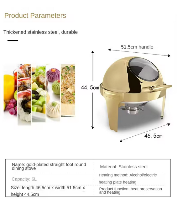 plat chauffant rond en acier inoxydable de 6L à couvercle roulant est