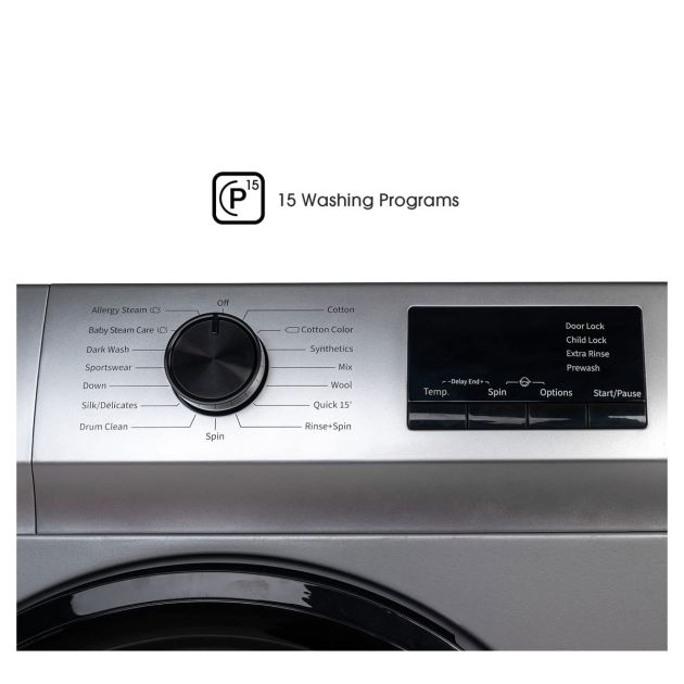 Cette machine à laver automatique dispose de 15 programmes pour s'adapter à la garde-robe de toute la famille et à tout votre linge de maison. Vous retrouverez un programme coton, laine, mélange/mix, textile sport, délicat, vapeur anti-allergies, vapeur spécial bébé, couleurs foncées, couette, rapide, essorage, nettoyage du tambour etc...