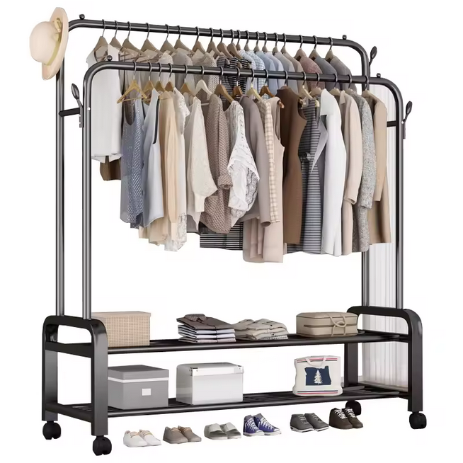 Ce portant à vêtements métallique multifonctionnel est fabriqué en fer durable,