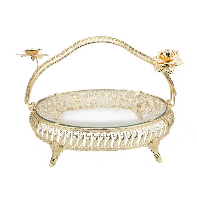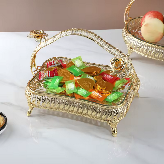 Ce plateau de service en métal doré portable combine élégance et fonctionnalité, ce qui le rend parfait pour décorer la maison, l'hôtel ou les fêtes. Fabriqué en métal durable, il présente un design multifonctionnel avec des poignées pour faciliter le transport. Sa caractéristique durable et en stock assure commodité et respect de l'environnement.
