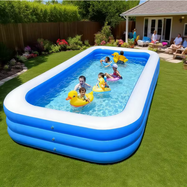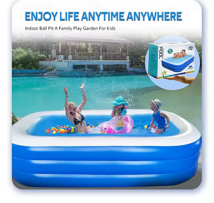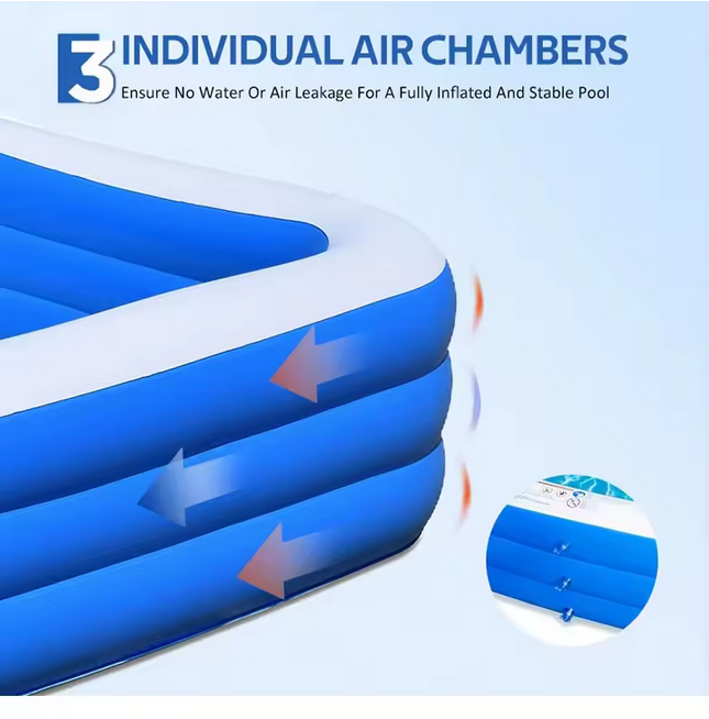 Cette piscine gonflable est fabriquée en matériau PVC épaissi, assurant une grande durabilité et résistance à l'usure et aux rayures. Elle présente trois chambres à air indépendantes