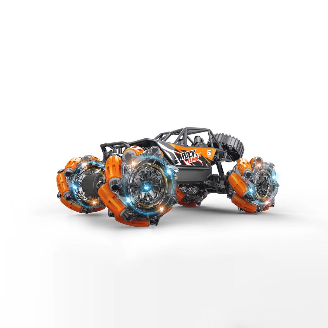Ce véhicule tout-terrain télécommandé est un jouet high-tech conçu pour des performances impressionnantes. Il se distingue par ses roues omnidirectionnelles innovantes, composées de multiples petits rouleaux, qui lui permettent de se déplacer latéralement, de tourner à 360 degrés et de rouler sur des terrains difficiles. Le châssis robuste et son design moderne et agressif en font un choix parfait pour les amateurs de courses tout-terrain. De plus, il est doté d'effets lumineux, ajoutant une dimension spectaculaire à l'expérience de jeu. C'est un cadeau idéal pour les enfants et les adolescents qui recherchent un jouet télécommandé sortant de l'ordinaire.