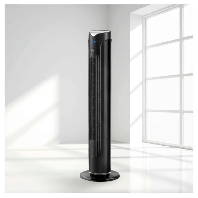 Avec une puissance de 45 W, ce ventilateur offre un flux d'air puissant, garantissant une fraîcheur immédiate. Sa hauteur de 81 cm et son oscillation gauche/droite permettent de couvrir une grande surface, assurant une ventilation uniforme dans toute la pièce.