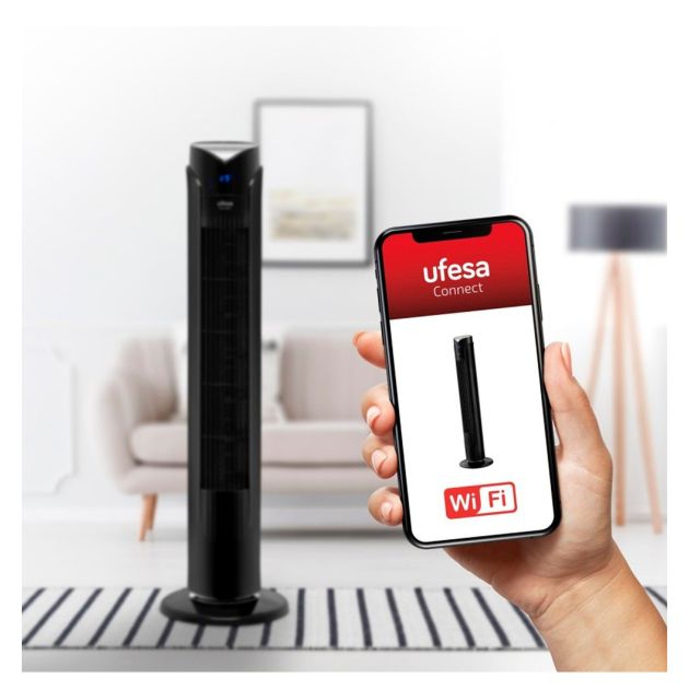 Le ventilateur UFESA intègre la technologie Wi-Fi, vous permettant de le contrôler depuis votre smartphone via l'application Ufesa Connect. Vous pouvez ainsi ajuster les paramètres sans bouger de votre lit, pour un confort sur mesure.